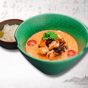 Креветки с мозговой косточкой с рисом том ям